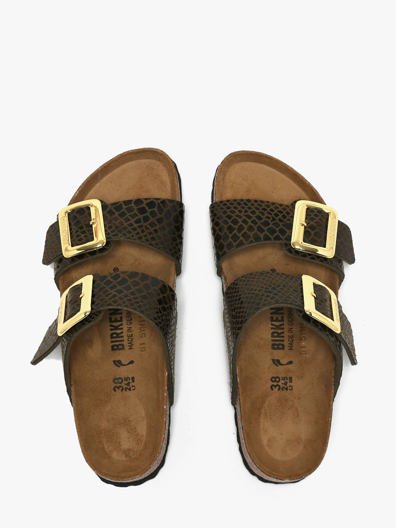 Les mules Sydney de BIRKENSTOCK prouvent qu’une sandale fonctionnelle peut aussi être élégante. Dotées de deux brides sobres, elles séduisent celles qui recherchent à la fois confort et style. Cette version au coloris Shiny Snake brillant apporte une touche d’extravagance avec son fini métallique irisé effet peau de serpent, inspiré de motifs naturels. Les boucles épaisses et brillantes aux bords arrondis, semblant matelassées, subliment le modèle. La tige est confectionnée dans une matière synthétique douce, tandis que le lit de pied anatomique en liège et latex assure un confort exceptionnel. La semelle de propreté en cuir velours et la semelle d’usure en EVA complètent cette mule raffinée et confortable, idéale pour un usage quotidien.