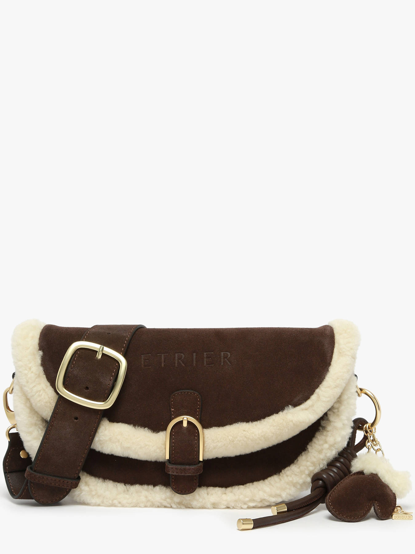 Le sac bandoulière ETRIER de la ligne ALPIN est confectionné en cuir velours garni de mouton, avec un dos en cuir lisse offrant une meilleure tenue dans le temps. Pour un porté haut confortable, la bandoulière réglable et amovible complète ce modèle à la fois élégant et pratique. Il se ferme à l’aide d’un rabat qui se ferme par pression aimantée. À l’intérieur, une poche simple et une poche zippée permettent une organisation optimale. Fidèle à l’univers ALPIN, il est agrémenté d’un porte-clés-bijou décoratif reprenant les symboles de la marque : moufle, étrier et les lettres ETRIER.