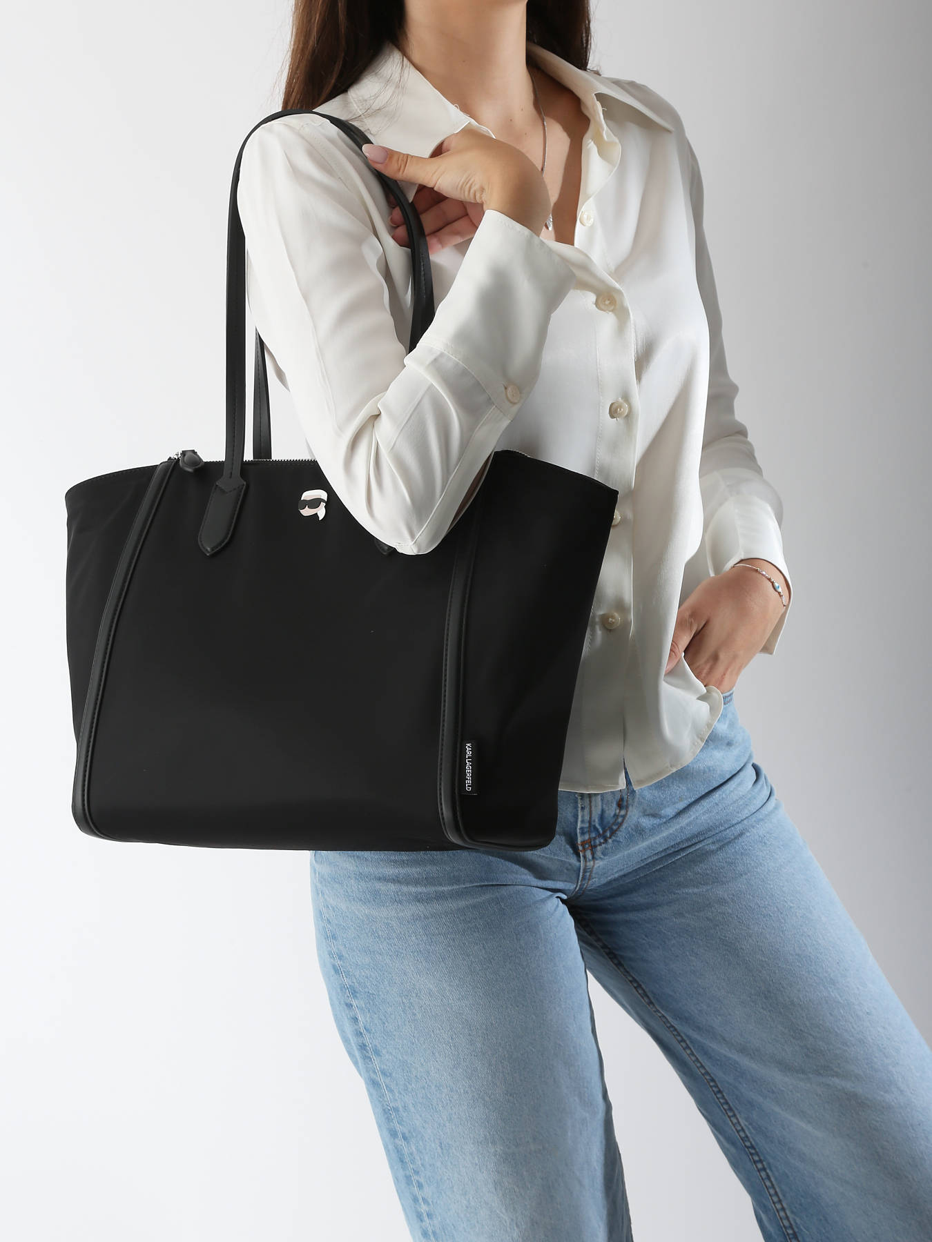 Ce sac porté épaule Karl Lagerfeld en nylon allie légèreté et robustesse pour un usage quotidien efficace. Sa fermeture zippée garantit la sécurité de vos effets personnels tout en facilitant un accès rapide et simple. Conçu pour un porté à l’épaule, il offre un confort optimal grâce à sa structure souple et résistante. À l’intérieur, un compartiment unique permet de ranger l’essentiel avec simplicité et praticité. Ce sac, à la fois fonctionnel et élégant, s’adapte parfaitement à un style de vie urbain et dynamique, sans sacrifier l’esthétique contemporaine chère à Karl Lagerfeld.